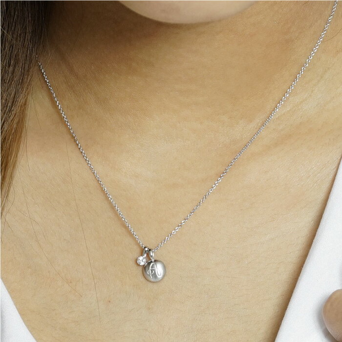 シンプルなプレートのイニシャルペンダントに一粒ダイヤモンドがキラリ・・・☆