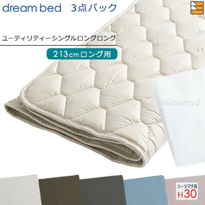 【USLL マチ30】【正規販売店】ドリームベッド ベッドパッド シーツ 3点セット ( 3点パック ) ウールパッドPD-926 スタートスリーセット ボックスシーツ SH1000 マチ30cm ユーティリティーシングルロングロング マットレスサイズ213cm用 DB097