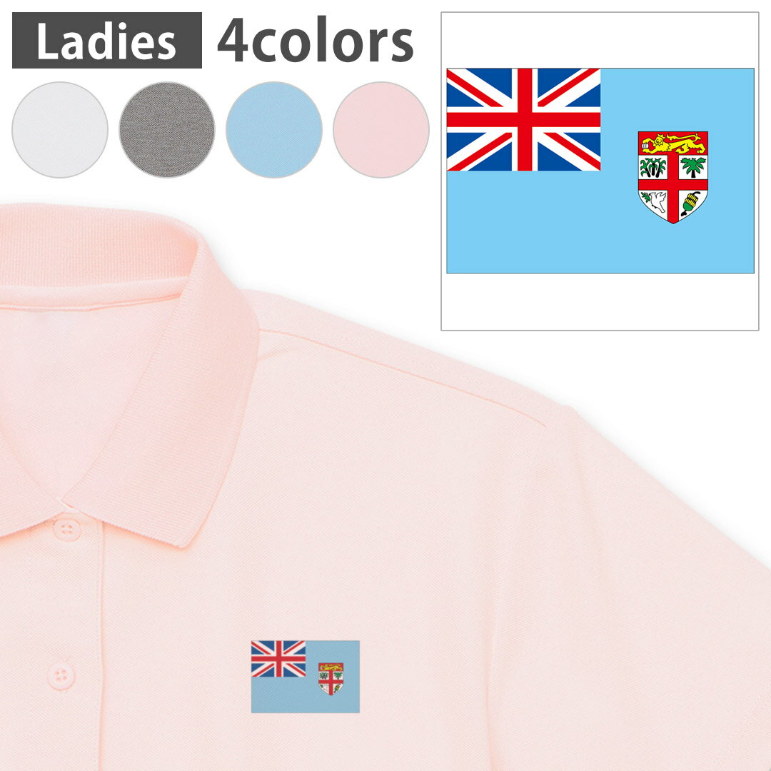 選べる4カラー レディース 女性 ウーマン ドライポロシャツ 鹿の子 メンズ 半袖 ホワイト グレー ライトブルー ベビーピンク ワンポイントデザイン Polo shirt シワが付きにくい 乾きやすい M L 018259 ワンポイント 国旗 フラッグ サッカー ラグビー フィジー