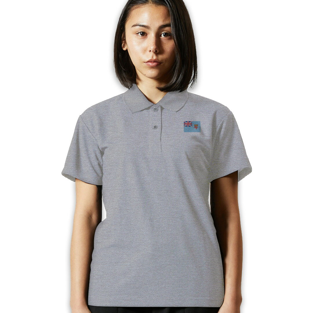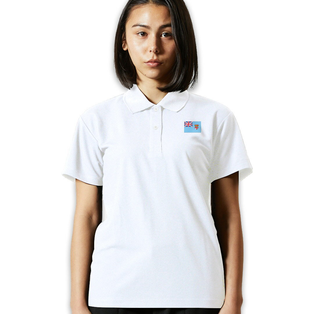 選べる4カラー レディース 女性 ウーマン ドライポロシャツ 鹿の子 メンズ 半袖 ホワイト グレー ライトブルー ベビーピンク ワンポイントデザイン Polo shirt シワが付きにくい 乾きやすい M L 018259 ワンポイント 国旗 フラッグ サッカー ラグビー フィジー