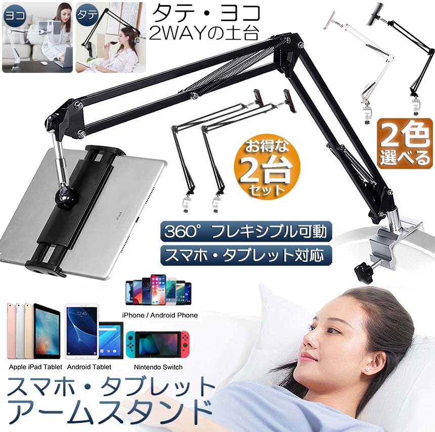 スマホスタンド 卓上 アームスタンド 2台セット クリップ タブレットスタンド おしゃれ ipadスタンド switch スタンド ipad アーム 横 縱 ベッドサイド 寝ながら ベッド用 360回転 スマホ スタンド ホルダー