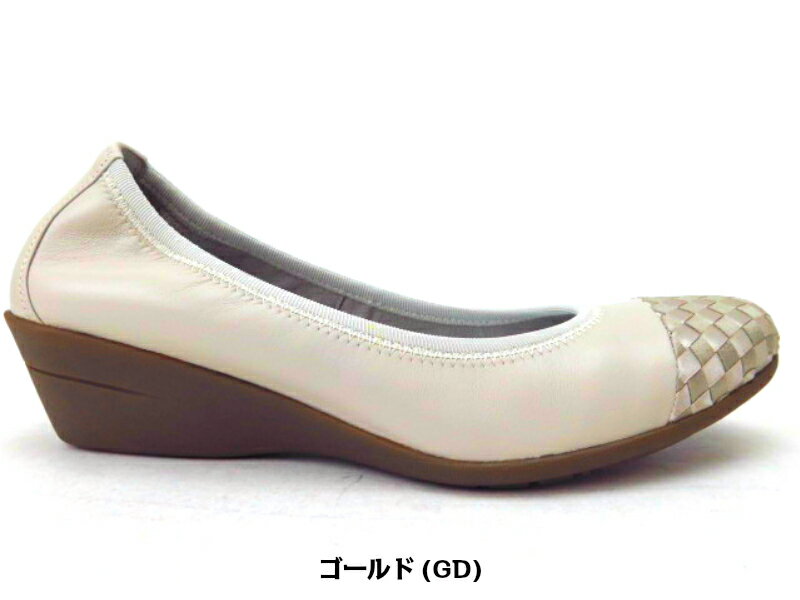 composition9 コンポジションナイン CP2764 レディースゴールドコンフォートシューズ バレエシューズ カッター婦人靴 低め ウエッジヒールプレーンパンプス (GD)22cm 22.5cm 23cm 23.5cm 24cm 24.5cm